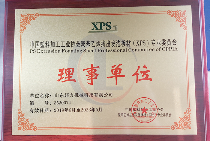 山東超力機械有限公司,憑借過硬的二氧化碳擠塑板(CO2-XPS)研發(fā)、生產技術與優(yōu)異的擠塑板設備質量,被中國塑料加工工業(yè)協會聚苯乙烯擠出發(fā)泡板材(XPS)專業(yè)委員會授予協會理事單位。...